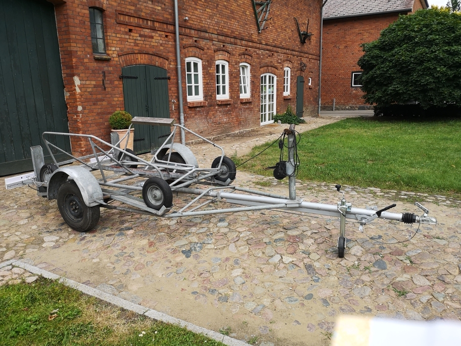 wieso Versicherung? Ein Sportboottrailer ist versicherungsfrei, solange er am Auto hängt (mitversichert). Allerdings gibts noch eine 150% Versicherung, die auch greift, wenn der Hänger, naja sagen wir mal, vor Rost zusammenbricht und jemanden verletzt, der sich grade darunter zum Schlafen gelegt hat