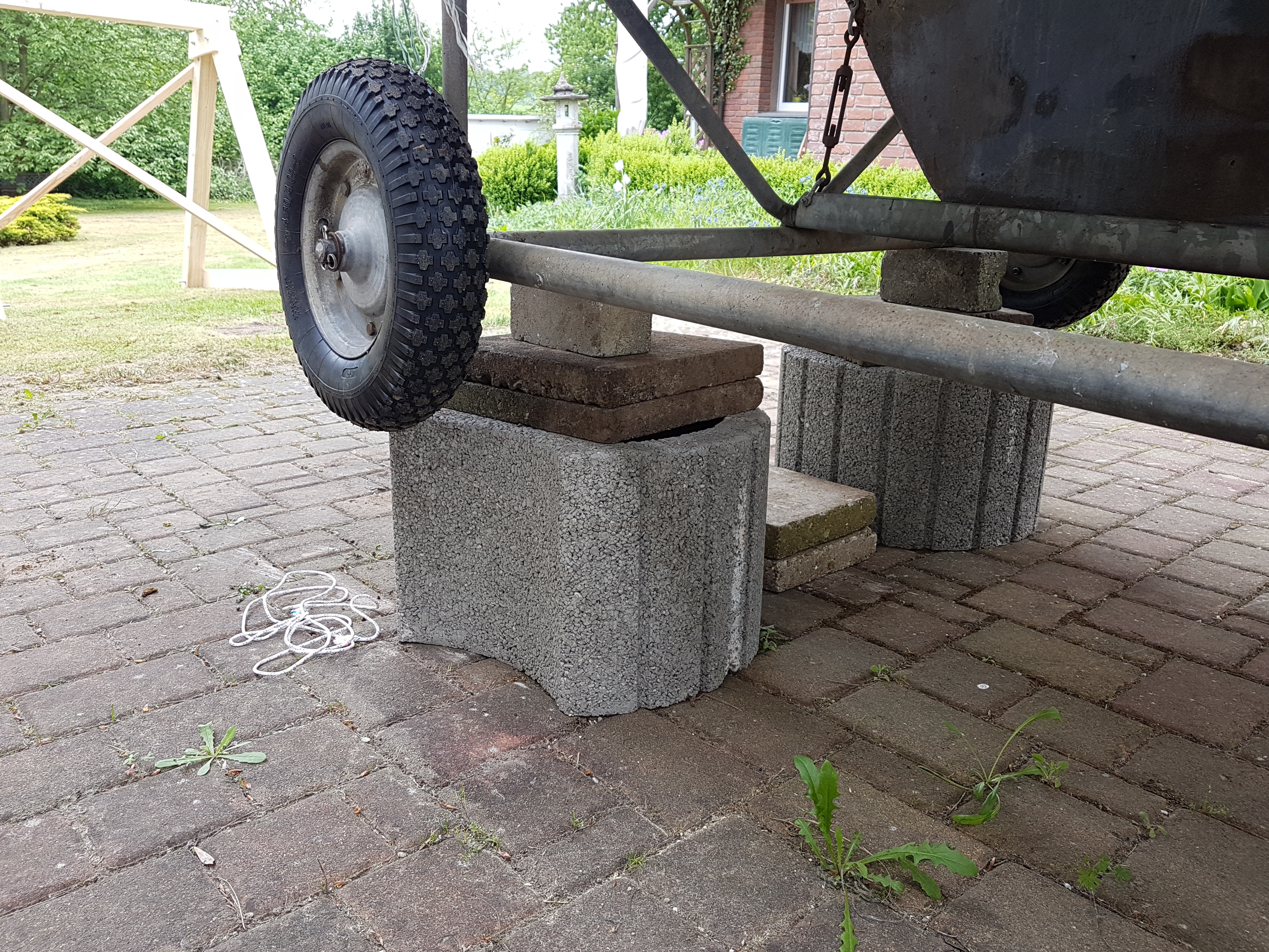 nein, ich habe keinen Stapler benutzt. Ich habe mit einem Hydraulischen Wagenheber den Slipwagen immer stückweise angehoben und mit Steinen unterfüttert bis die passende Höhe erreicht war. Anschließend dann die Böcke drunter gestellt, die Steine und den Slipwagen herausgenommen. Ich hänge mal ein paar mehr Bilder an...