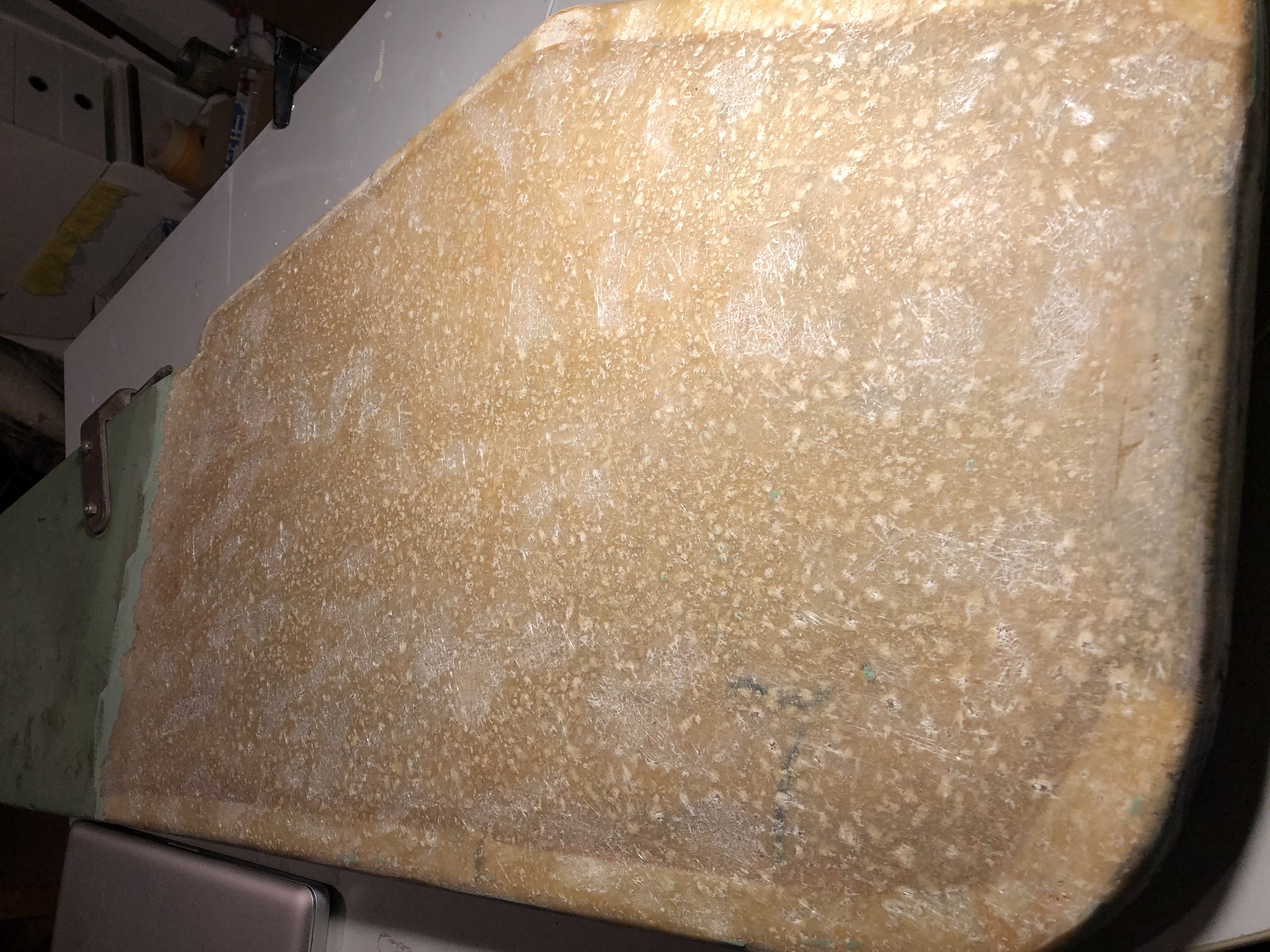 So, das Gelcoat ist ab. Das Ding sieht aus wie ein Streuselkuchen ;)