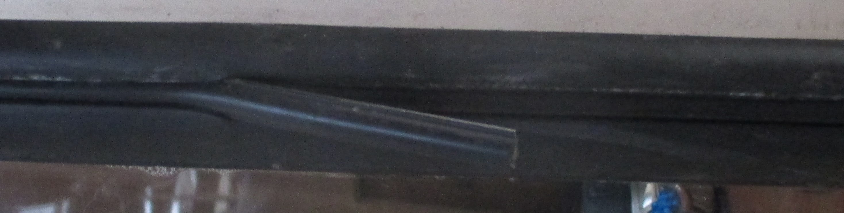 • Klemmprofil etwas länger als benötigt abgelängt und versucht zur Probe in den Ausschnitt zu drücken. Dabei festgestellt, daß das Gummi a) sich so nicht in die engen Radien der Ecken drücken läßt; b) "andersherum" aufgerollt war, d.h. die 6 mm Nut war innen; c) ich nicht Hände genug hatte.