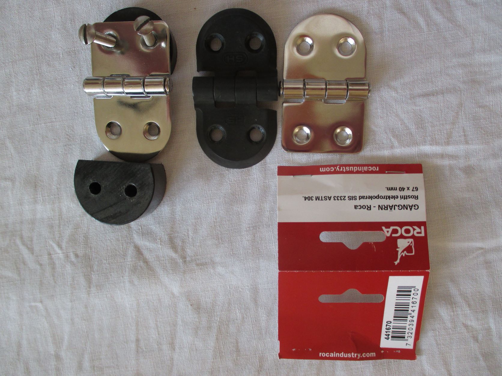 - 2 St. Scharniere "Roca 441670" (hatte die Fa. "SVB" im Angebot) ca. 9 €/St. (Art.-Nr. 441700 wäre besser gewesen; s.u.)