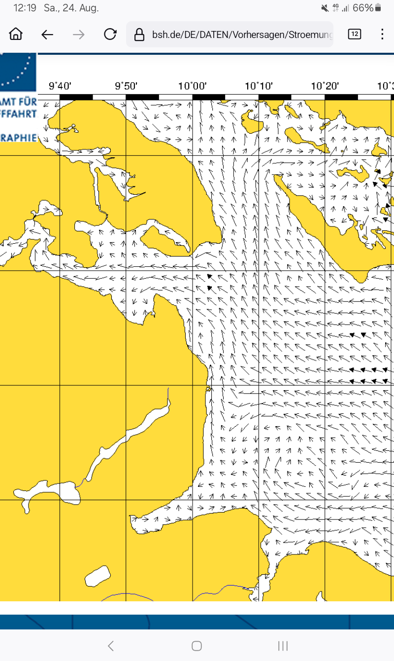 Für die mäßige Strömung werden etwa 0,05 bis 0,1kn abgezogen.