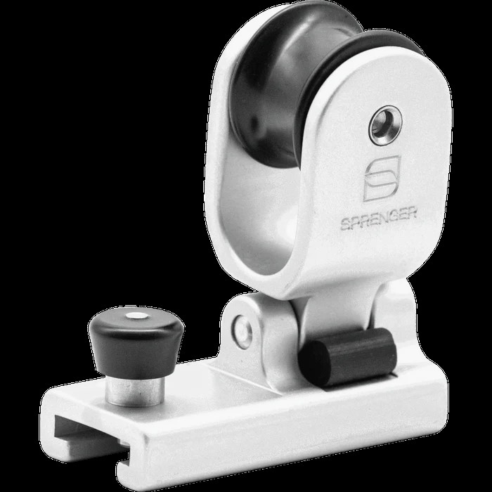 die Holepunkte ("Genuaschlitten") für das Vorsegel laufen ja auf den Schienen und lassen sich mit einer Bolzen-Feder-Konstruktion in den Löchern der Schienen arretieren.