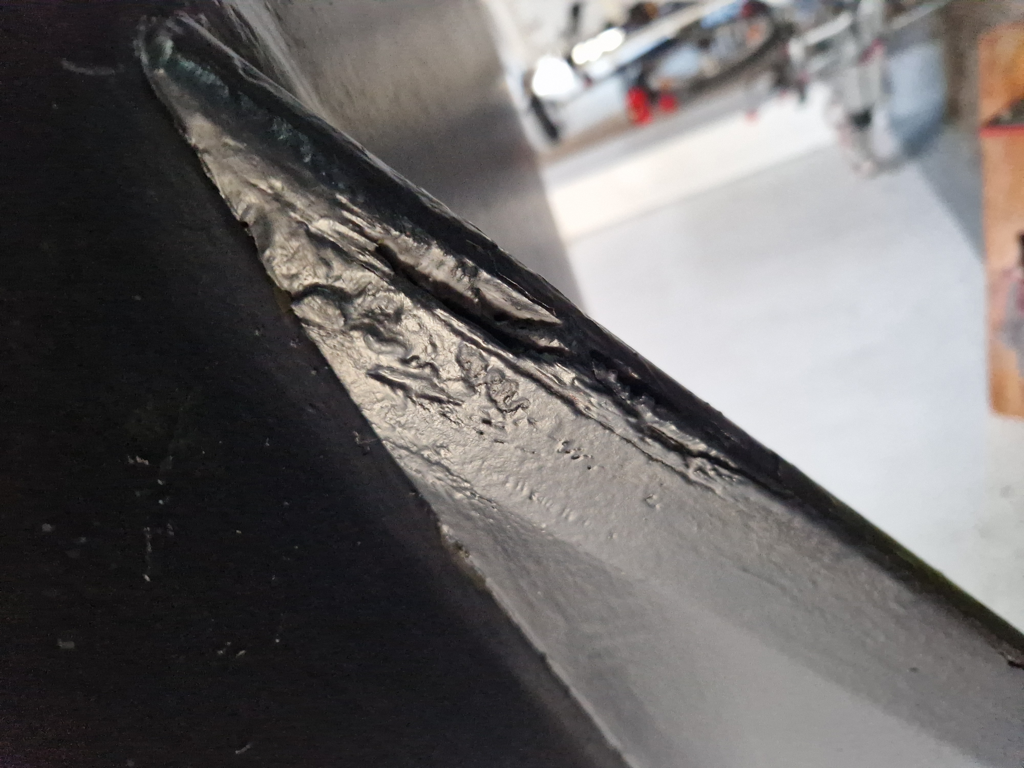 Nie jestem ekspertem, ale z tego co wiem, to tak się nie da. Użyłeś żywicy epoksydowej, ale maty szklanej przeznaczonej do żywicy poliestrowej – to może być problematyczne, ponieważ takie maty są często pokryte spoiwem, które rozpuszcza się tylko w rozpuszczalniku zawartym w żywicy poliestrowej. Żywica epoksydowa tego rozpuszczalnika nie zawiera – przez co mata nie łączy się prawidłowo z żywicą. Prowadzi to do słabej przyczepności i osłabionej struktury. Dla mnie byłoby to w tym miejscu zbyt ryzykowne – zrobiłbym to od nowa. Mam nadzieję, że to jest zrozumiałe, w tłumaczeniu pomógł mi ChatGPT.