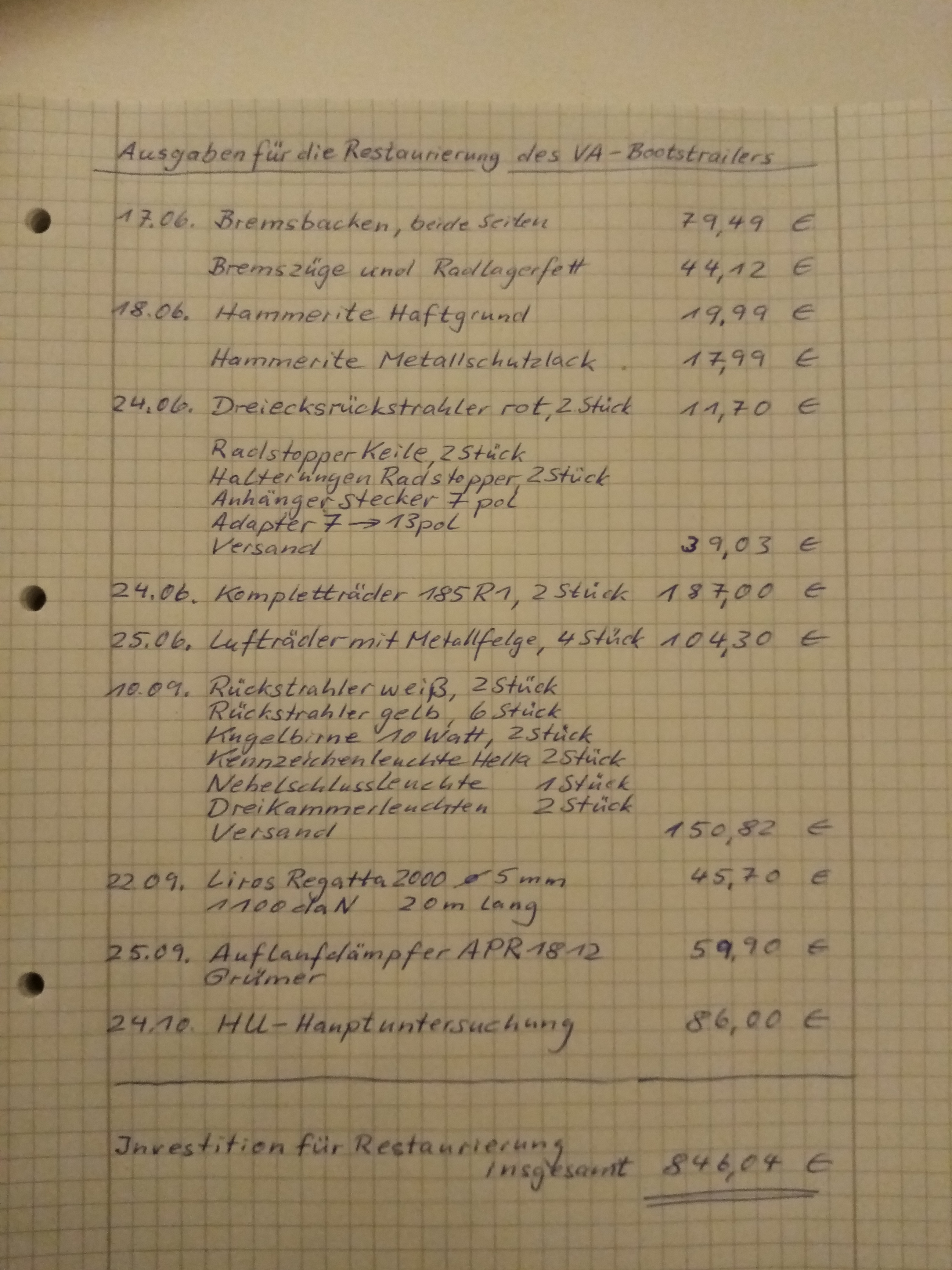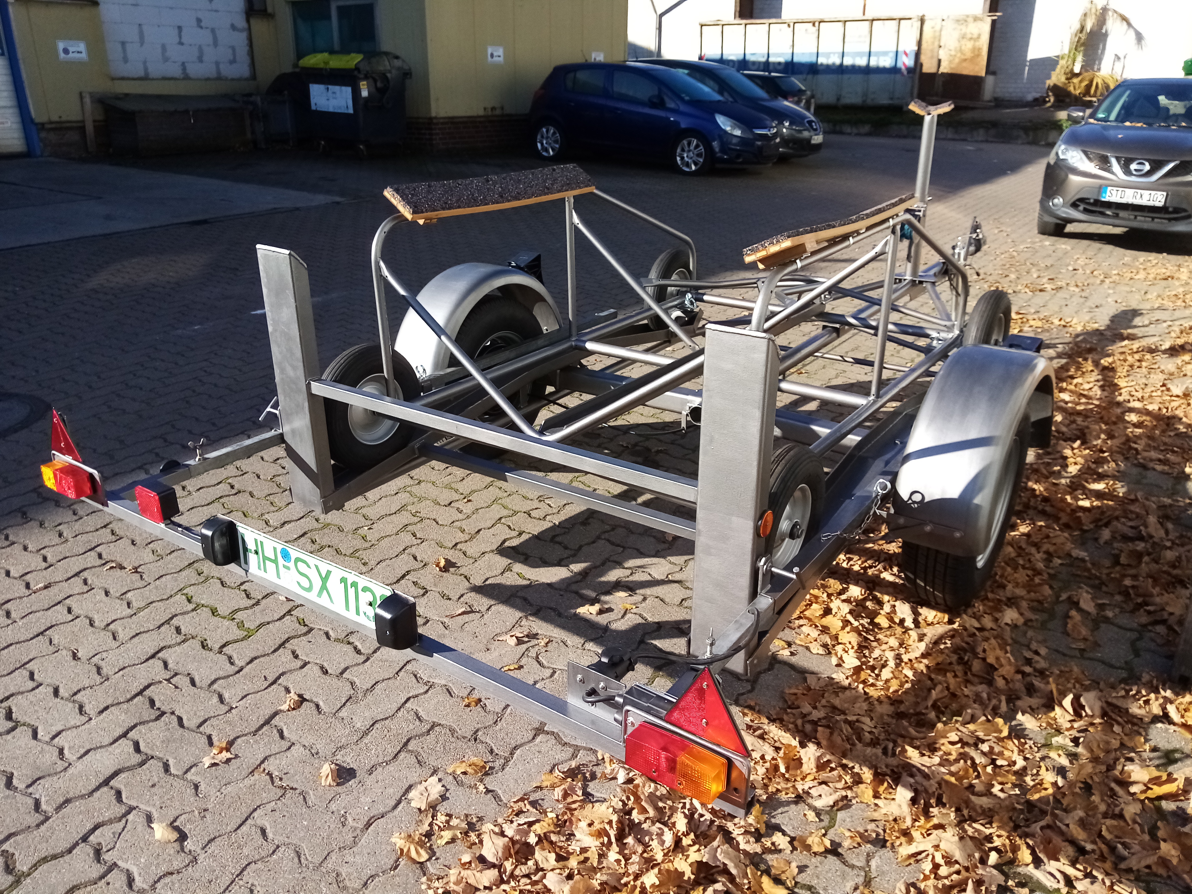 Ich verkaufe den Trailer, weil ich den Rumpf meiner Varianta 65 so verlängert und verbreitert habe, dass er nicht mehr auf den Trailer paßt.