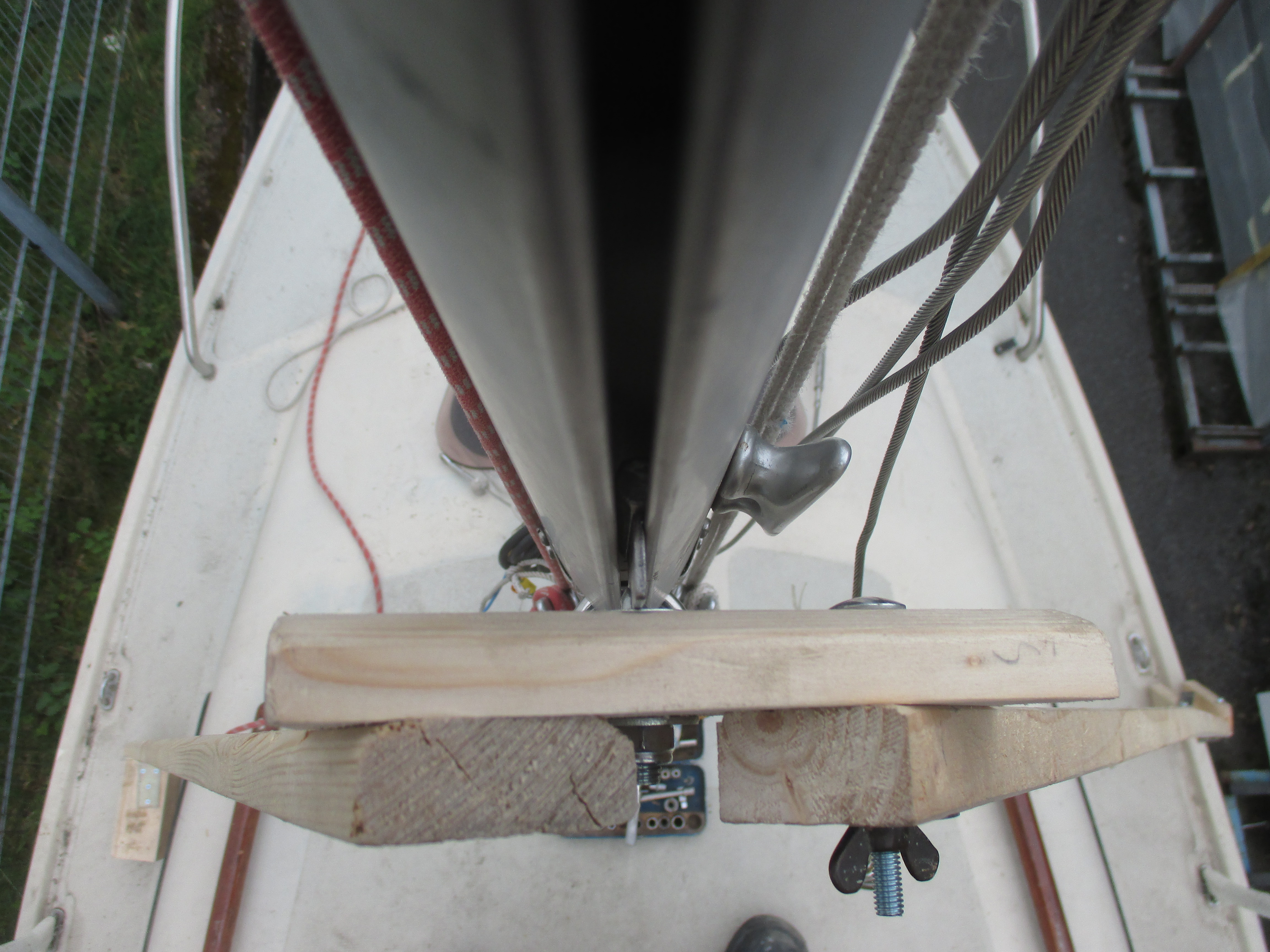Doch Felix, bei einer normalen Jüteinrichtung sind die Unterwanten auf Höhe des Mastdrehpunktes gelagert, dadurch ist der Mast in jeder Lage gegen Querkräfte stabilisiert. Ab wenn es nur ums Maststellen geht, das geht ohne Querstabilisierung, denn da sucht man sich ja eine ruhige Ecke. Da ich dieses Jahr auch so meine Probleme hatte, den Mast allein hochzuwuchten
