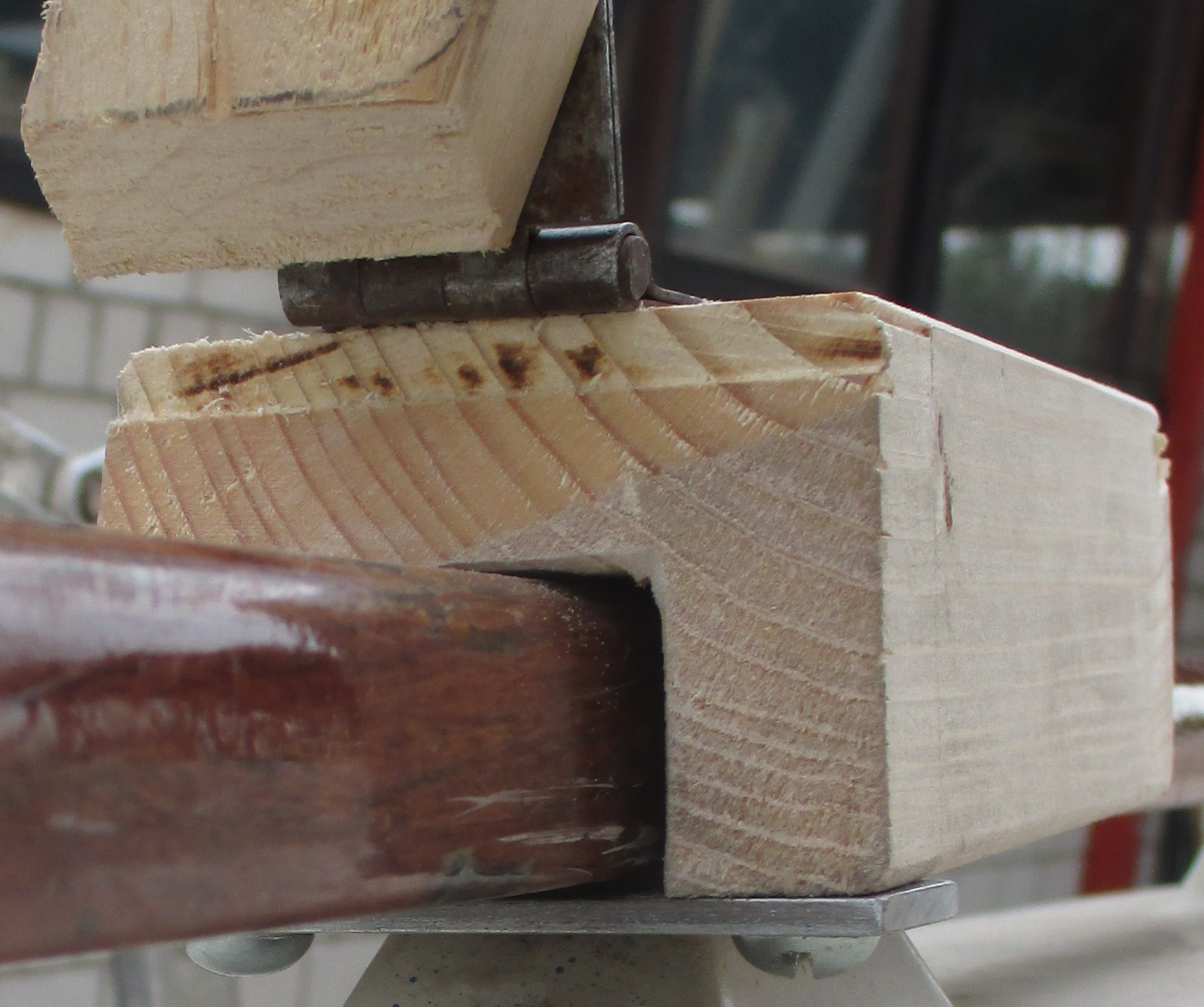 hier wie ich es mache, zwei Latten links und rechts vom Mastfuss mit verlängerter Schraube, fixiert auf drei Seiten, bleibt also fix wenn sich der Mast bewegt, Stabilisierung auf jeden Fall nötig, zwei Latten genügen mit einem dritten Holz der den Rutscher trägt. Wenn die Wanten irgendwo hängen bleiben, muss ich mich auf dem Schiff auch bei schiefem Mast bewegen können, das geht bei diesem System.