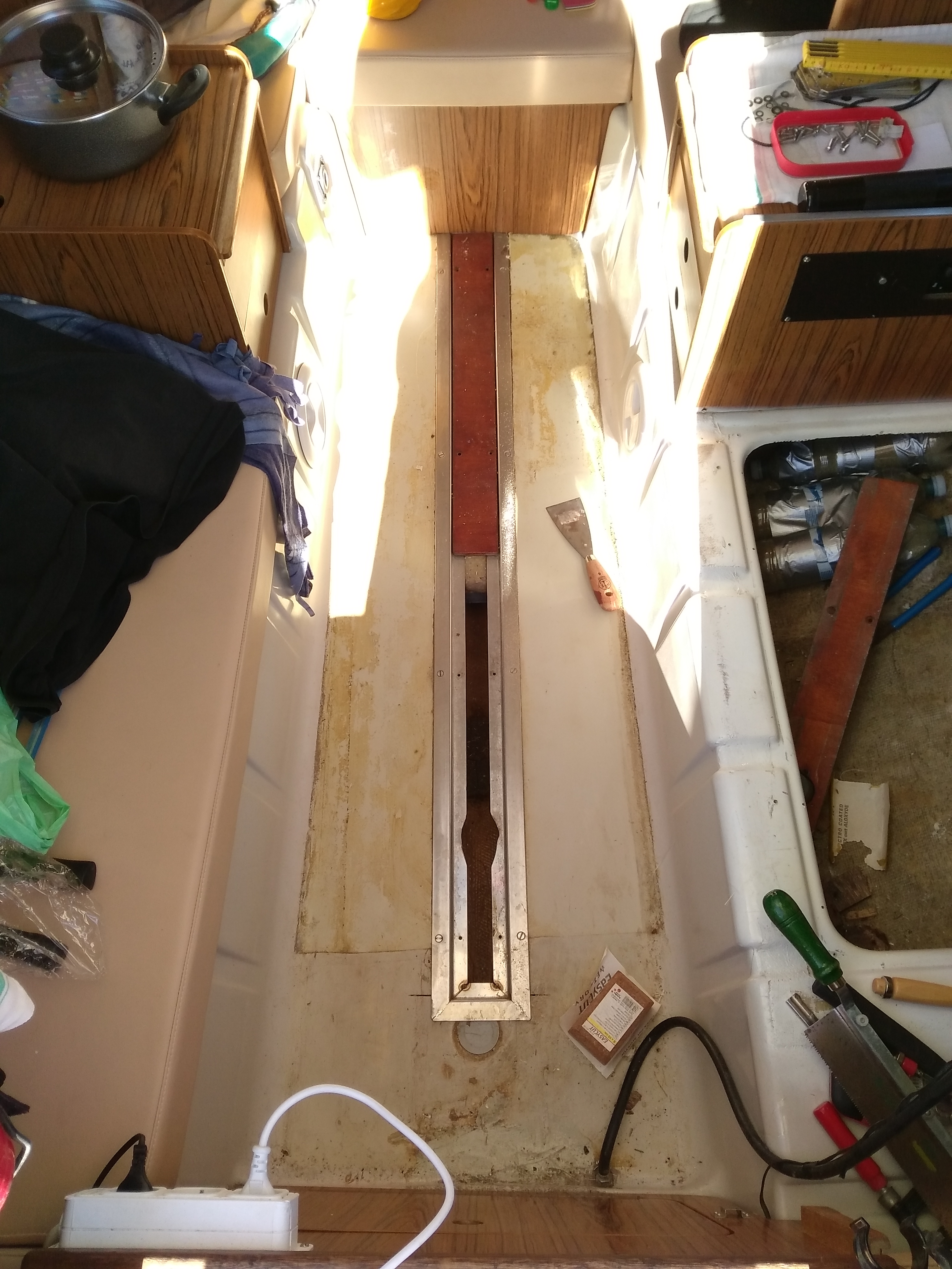 "in Kajüte verlegen" ist ja das angesagte Thema. Dennoch sind Anregungen aus dem Plicht-Bereich sinnvoll, denn was dort hält, wird´s für den Salon auch tun. Allerdings nicht umgekehrt.