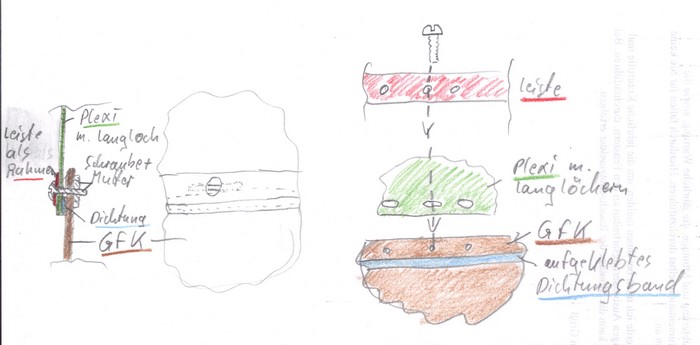 Besten Dank für die Zeichnungen. Langlöcher und Schrauben mit speziellen Dichtscheiben habe ich alles gemacht, leider erfolglos.