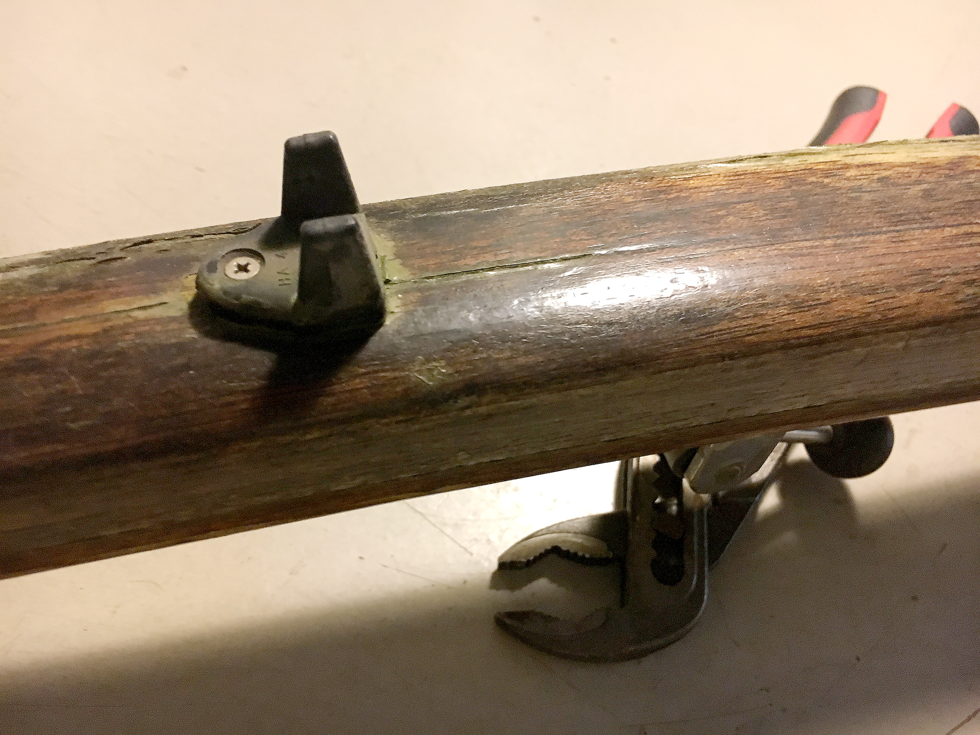 Jetzt habe ich die Pinne mal geschliffen und nun wird überhaupt erst die Holzstruktur erkennbar...