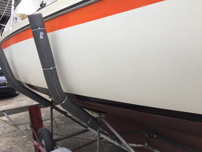 mein Slipwagen wurde von mir modifiziert mittels 4 abnehmbarer Rungen und einer höheren Kielfühung.