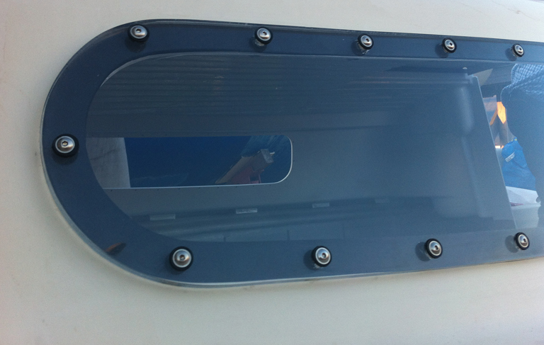 Meine Kajütfenster sind leider nach Montage an vielen Schraubenlöchern eingerissen. Die Wärmeausdehnung von Plexiglas ist 10x größer als die von GfK in Faserrichtung. Also bei Temperaturerhöhung wird das Fenster größer im Verhältnis zum Ausschnitt, mehrere mm. Das habe ich zwar durch 4mm dickes Sika und entsprechend vergrößerte Schraubenlöcher berücksichtigt, hat aber nicht gereicht.