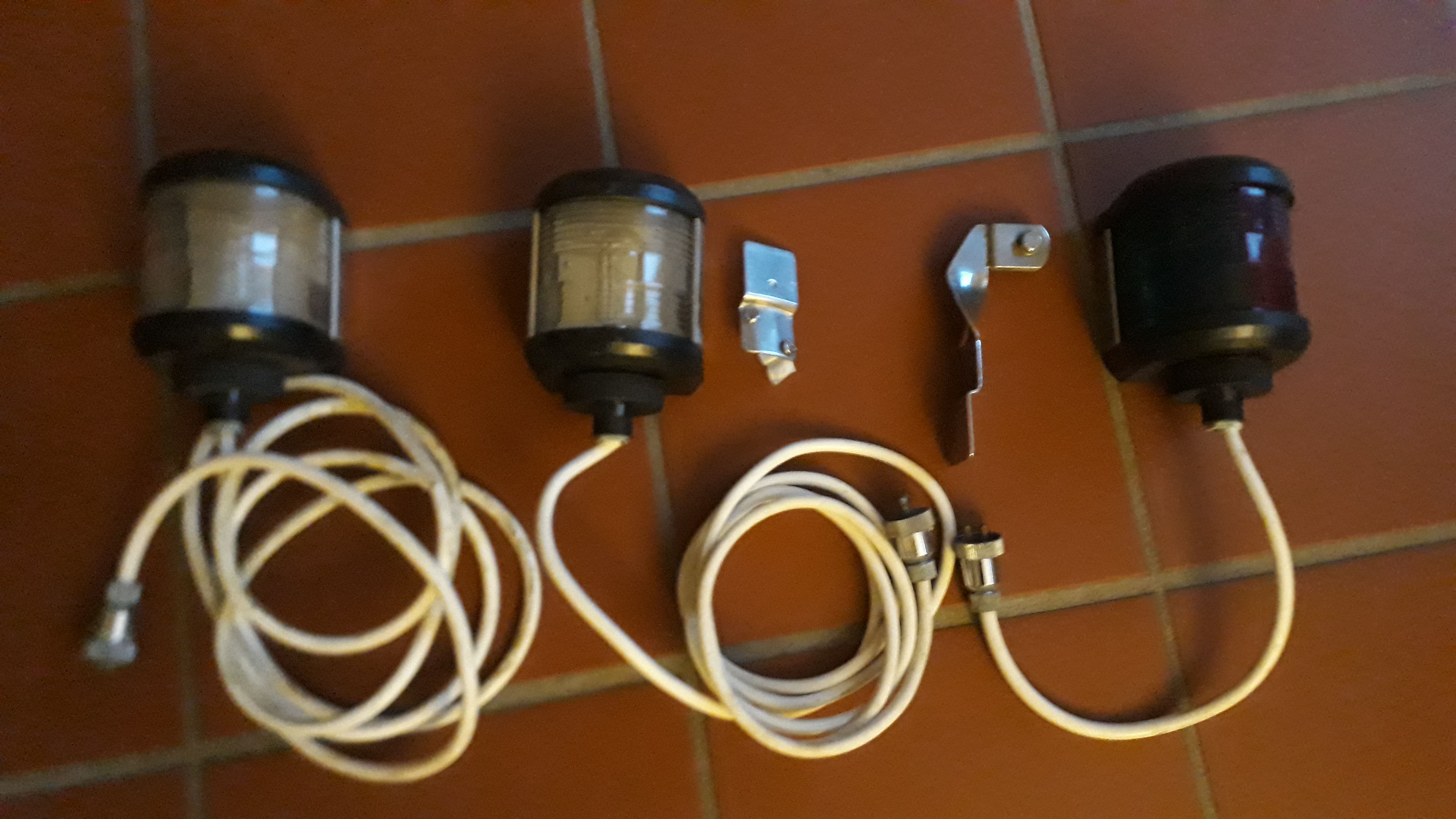 3 Positionslampen , 2× weiß Heck & Dämpfer mit Halterrung, 1× rot grün mit Halterrung . Alle mit Stecker