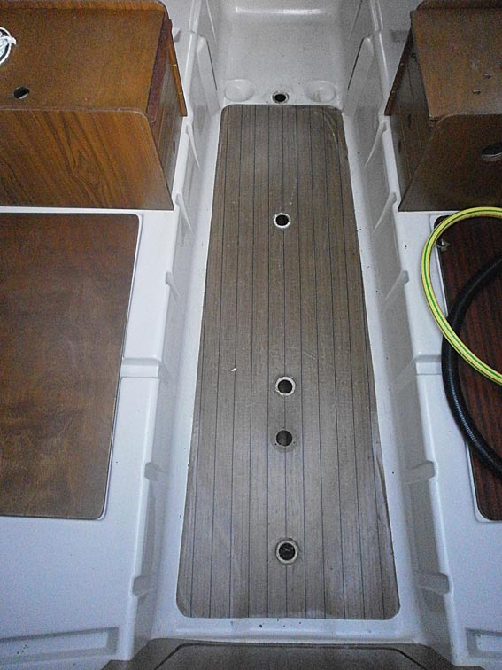 Wenn ich das richtig sehe, sitzt sie bei mir dort, wo bei Deinem Boot die Inspektionsöffnung auf Höhe der Schränke liegt.
