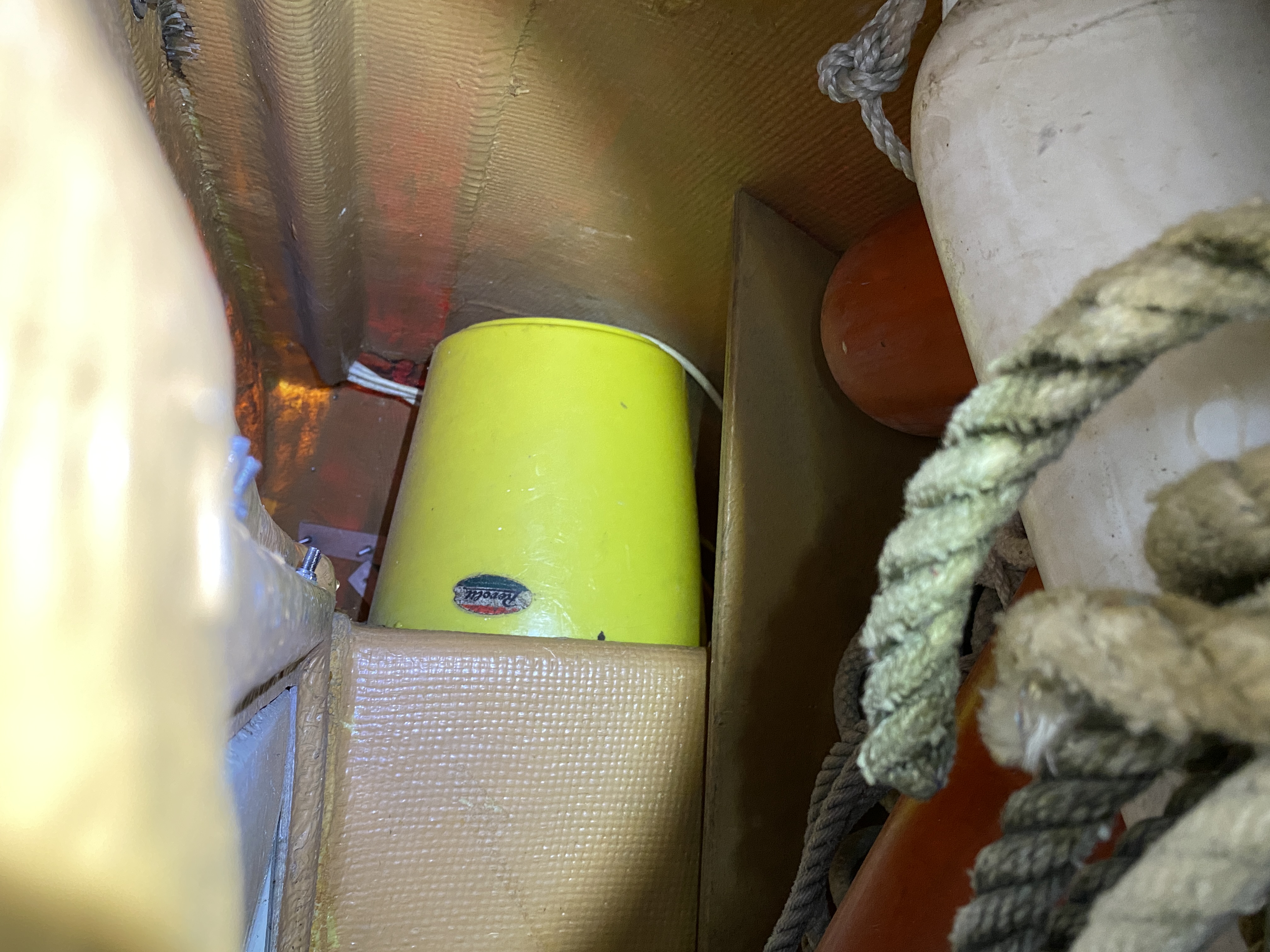 den gelben Eimer auf der Backbordseite hatte ich auch, allerdings ohne Kabel. War zum Schluss gekommen, so sollte die Achterpiek für die Lagerung eines Aussenborders in Querrichtung verbeitert werden.