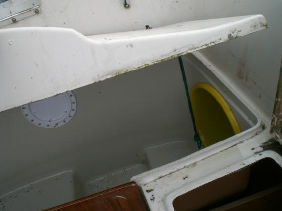 Ich vermute der Eimer ist nur für die Verbreiterung der Heckbackskiste. Um z.b. einen Motor dort zu lagern, als Diebstahlsicherung. Unter Deck hätte manden Benzingeruch.