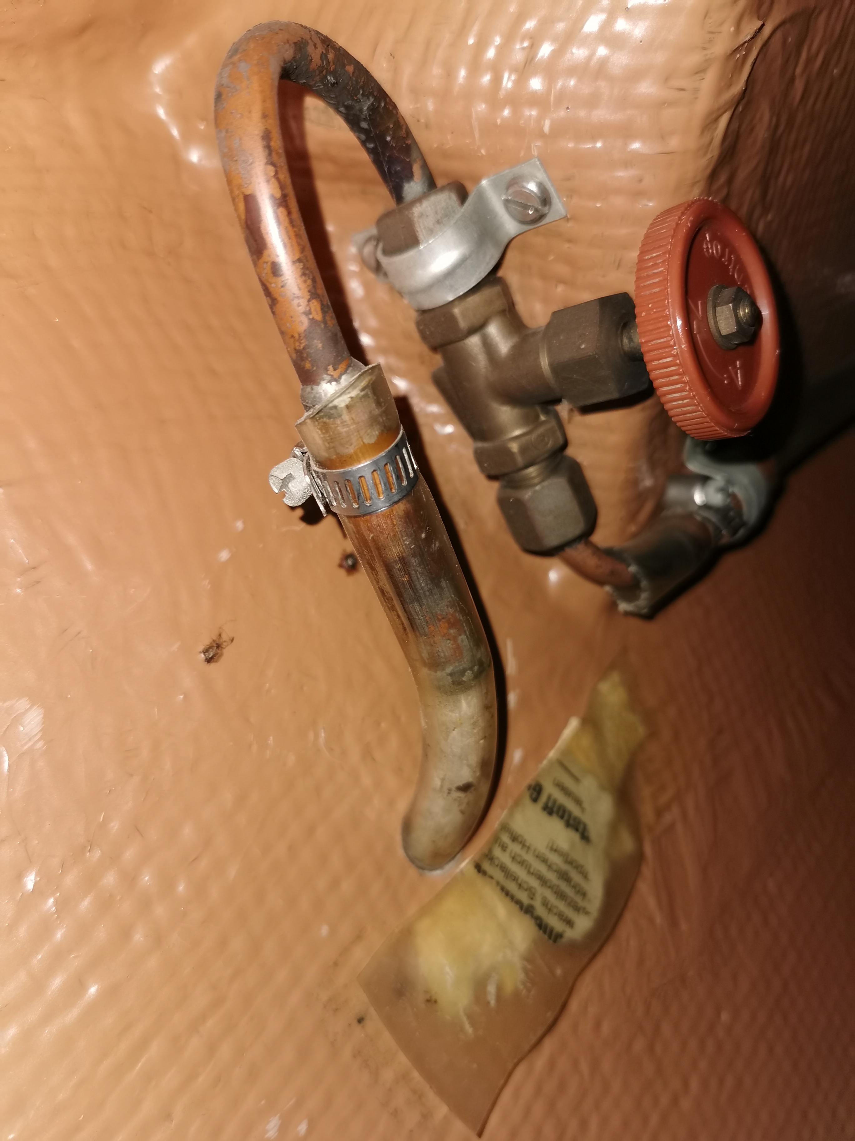 Gleich daneben eine Kupfer/Plastik-Leitung mit Hahn!