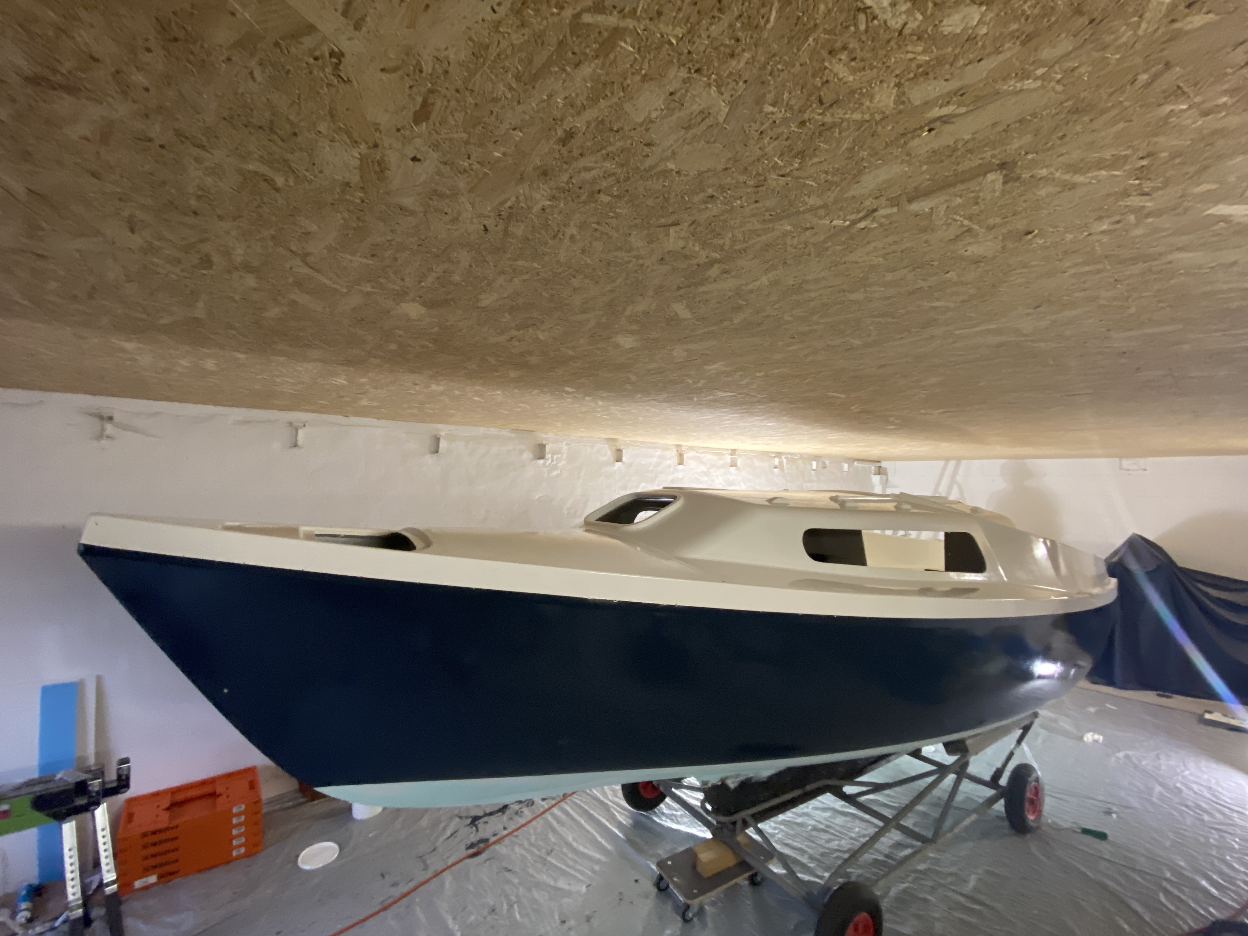 "Anschleifen", Epoxy Barrier Primer von Behnke drauf und anschließend 2K Deckslack (ebenfalls von Behnke).