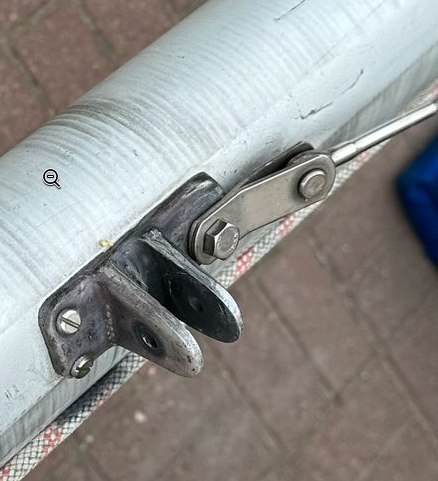 Bei mir sind die Wanten oben dann sicher auch mit Bolzen befestigt, allerdings sind die Sicherungssplinte "innen", was wahrscheinlich etwas Fummelei nach sich zieht. Sieht in etwa so aus (Bildausschnitt von Kleinanzeigen, bei uns aber ähnlich):