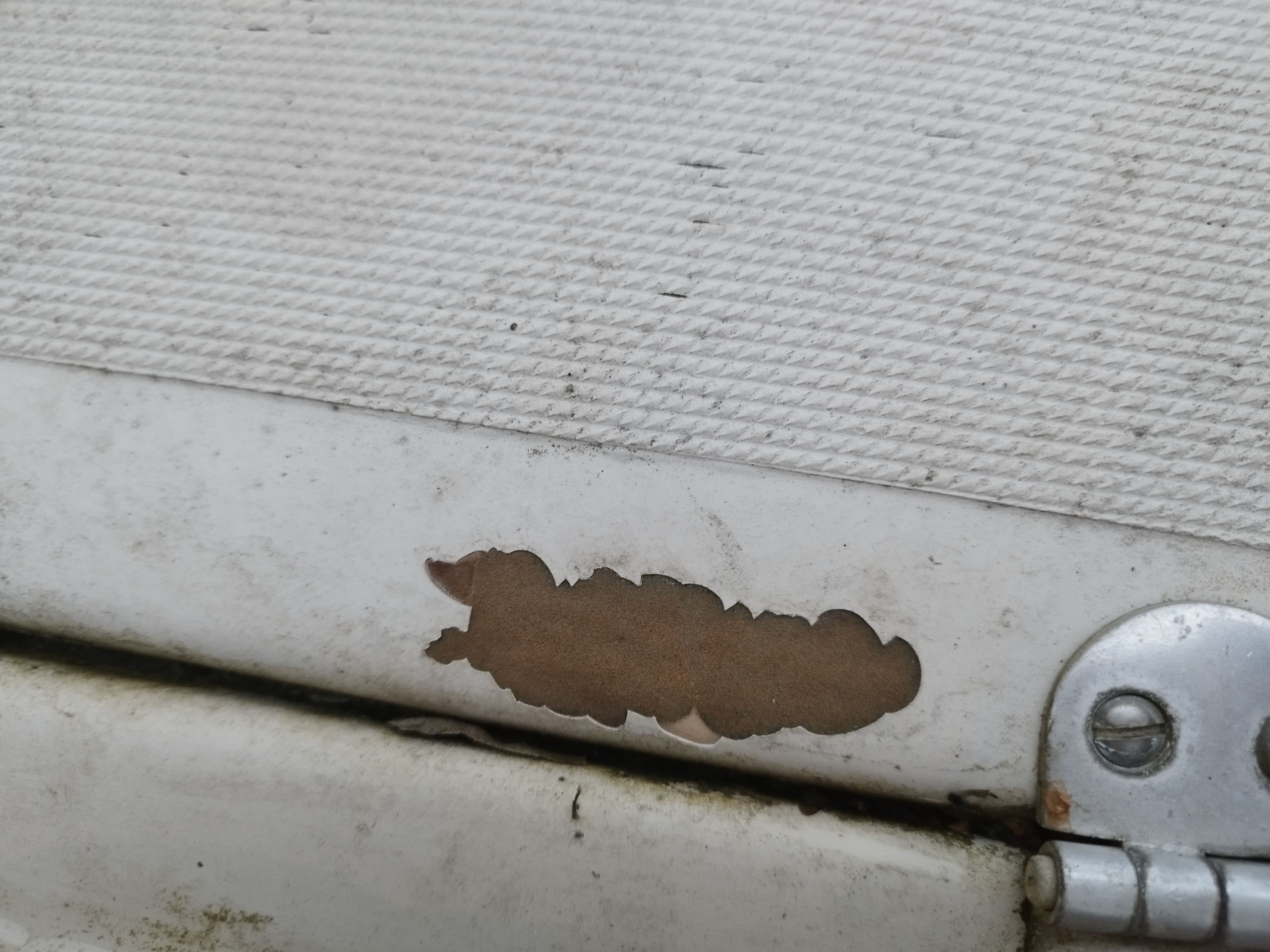 Das sieht für mich so aus als ob da das Gelcoat ab ist. Mein Vorschlag: Deckel abbauen und im Winter im warmen Keller mir 2k Lack lackieren. Den exakten Farbton des Decks zu treffen macht wenig Sinn, weil neue und alte Bereiche anders Altern. Dann lieber in einer Kontrastfarbe, z.B. grau.