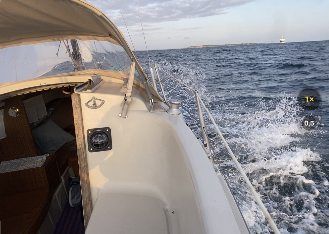 Es ging also allein erstmal in aller Herrgottsfrühe (mit wenig Wind) die Förde raus, am LT Kalkgrund vorbei und leicht angespannt (jetzt mit viel Wind, nur mit Genua noch echt flott unterwegs gewesen) über den kleinen Belt bis um die NW Spitze von Ærø.